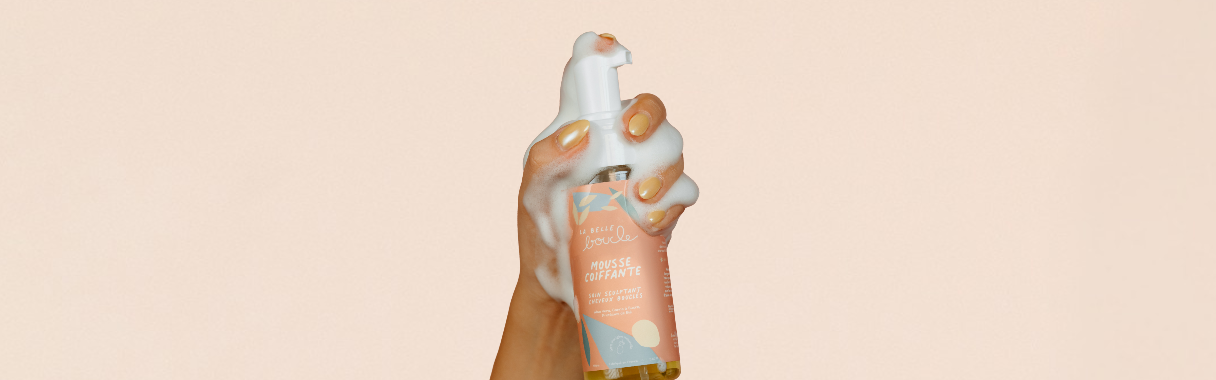 La tenue moyenne de la mousse suffit pour un rendu naturel et souple. Pour un style ultra‑défini, vous pouvez appliquer une noisette de Gel Aloe Vera La Belle Boucle avant la mousse.